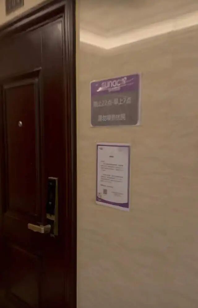 物业在这家民宿门口张贴22:00-7:00请勿噪音扰民的提醒