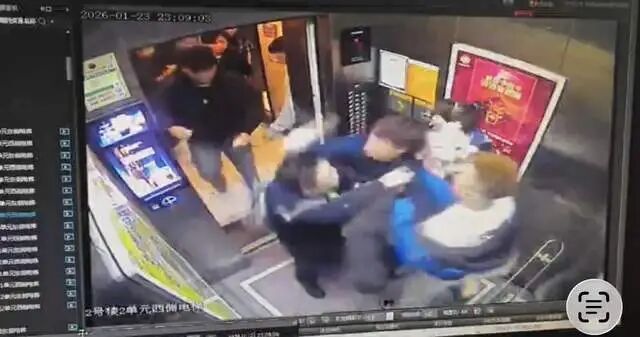 “当晚有住户打了报警电话,警察过了好久才来,在这之前,是保安和住户先去的,听说对方喝了酒,住户劝说时挨了一拳,保安被群殴了。”小区业主齐先生从业主群获知上述消息后,前往小区物业监控室,拷贝出电梯监控画面。