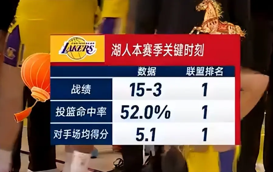 比赛结束前转播方给出,湖人关键时刻15胜3负联盟第一,那么此役后湖人关键时刻就是16胜3负延续联盟第一山西炒股配资开户,投篮命中率、对手场均得分也均为联盟第一。